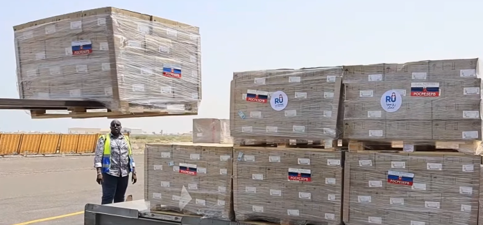 جيبوتي ( بوابة الصومال)– تسلّمت جيبوتي شحنة مساعدات إنسانية من روسيا لدعم الجهود المبذولة للتخفيف من آثار الجفاف المتفاقم الذي يهدد آلاف السكان بخطر الجوع وسوء التغذية.
