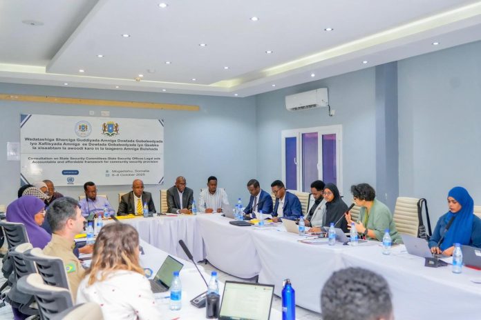 مقديشو ( بوابة الصومال)— أطلق مكتب الأمن القومي في الصومال مشاورات تستمر ثلاثة أيام في مقديشو، بهدف تعزيز إطار الحوكمة الأمنية في البلاد. وتجمع المشاورات كبار المسؤولين الأمنيين من المستويين الفيدرالي والإقليمي لمناقشة تطوير التشريعات المنظمة للتنسيق والرقابة الأمنية.