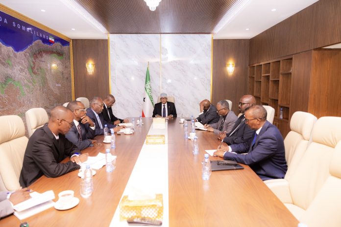 هرجيسا ( بوابة الصومال) — عقد رئيس صوماليلاند عبد الرحمن محمد عبد الله “عرّو” اليوم اجتماعًا مهمًا مع قيادات الأحزاب السياسية الثلاثة: الوطني، كلميه، وكاه، لمناقشة الوضع السياسي العام، والانتخابات القادمة، وجهود الحفاظ على السلام في منطقة عيرجابو.